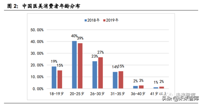 从需求人群看,中国医美需求以 20-25 岁的女性为主力。据新氧大数据统计, 2018 年所统计中国整形人群中,女性占比 89%,男性占比 11%。女性消费者中, 其中以 20-25 岁消费者占比最高,2019 年达 38.57%。95 后成为互联网医美消 费者主力军。