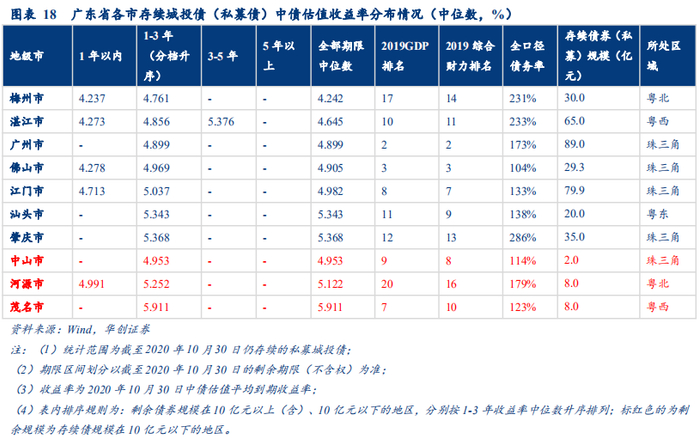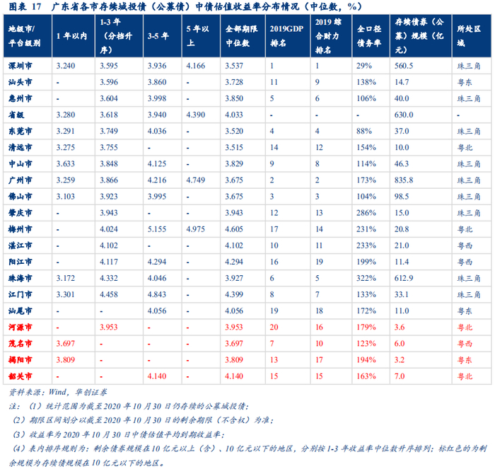 (三)区域内各地级市债券投资价值:珠三角个别城市挖掘潜力较大
