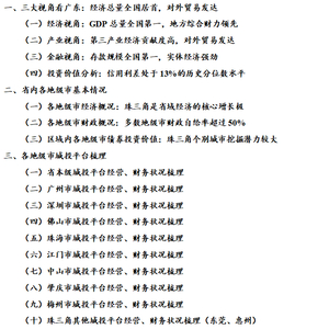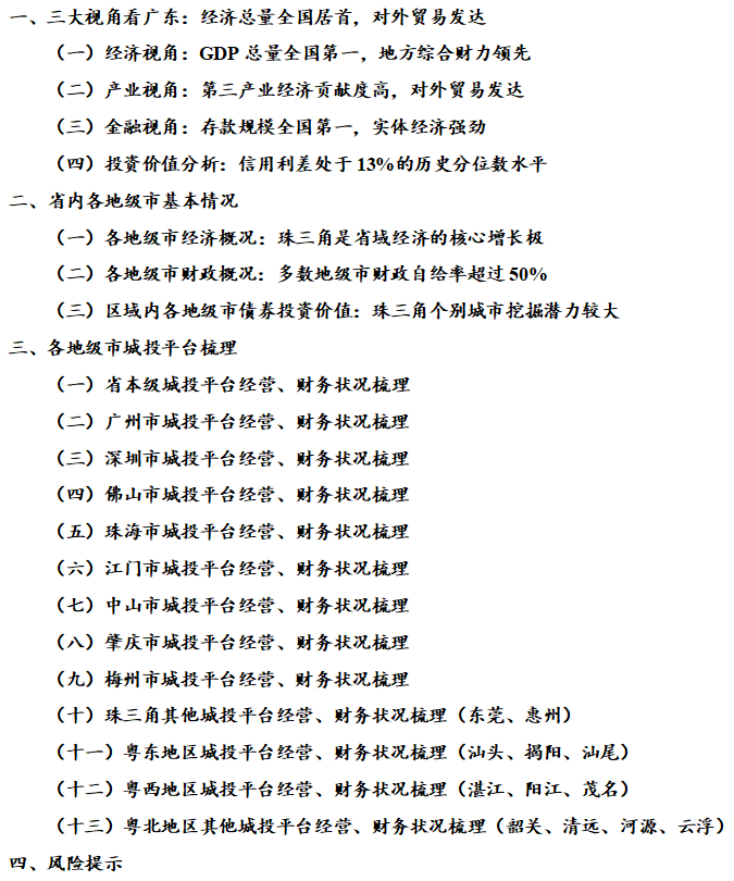 整体而言,广东省经济财政实力领先且债务规模很小,全省整体而言均属于偏低风险、低票息的城投债投资类型。从省内分档来看,大致可分为以下几类区域:
