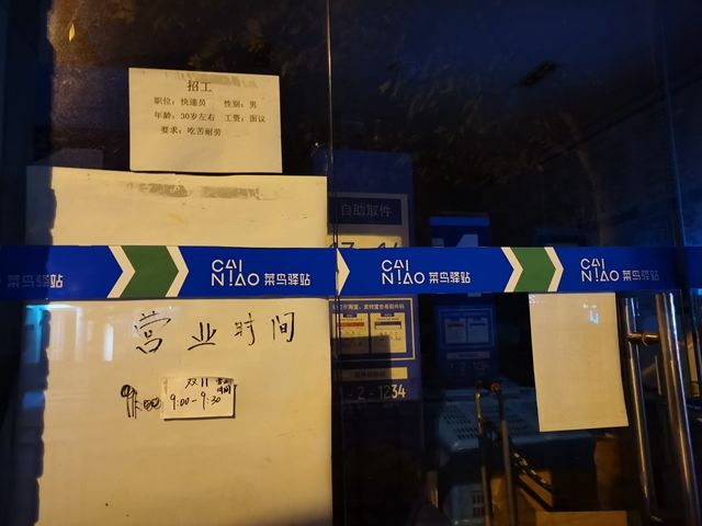 近日,第一财经记者走访了上海市多个物流驿站,驿站内堆满了快递包裹,周边居民下班后会前往驿站取快递。由于缺乏人手,部分驿站门前贴上招聘启事。