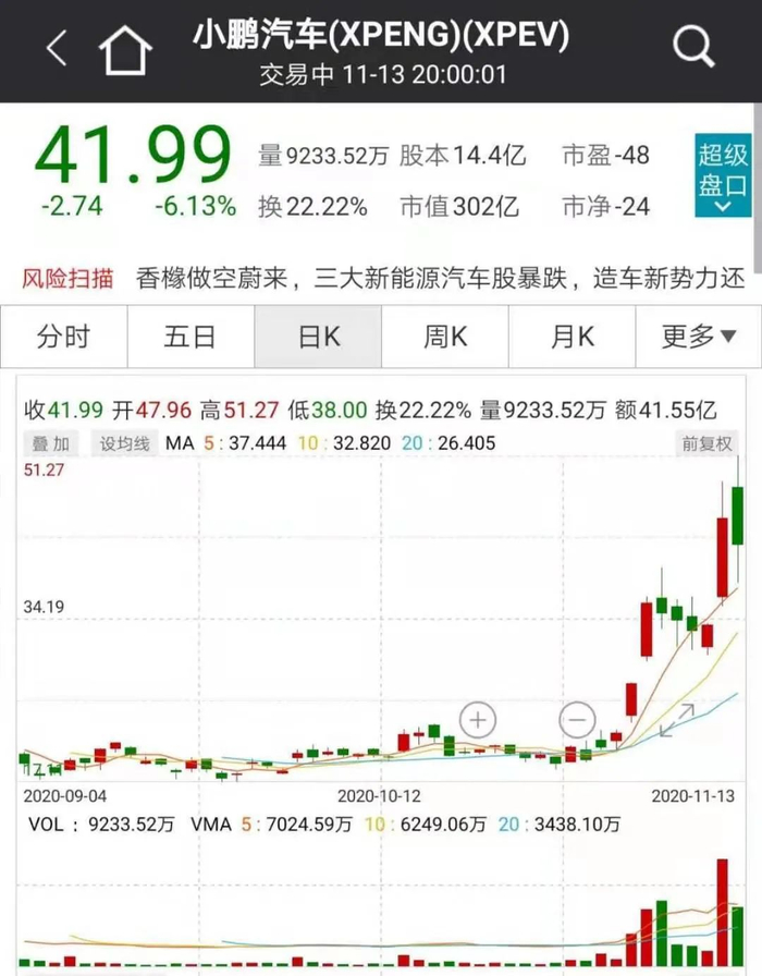 然而在11月13日盘中,沽空机构香橼发布了一纸报告“唱空”蔚来的报告,将各家造车新势力的股价从高位纷纷打落。这则报告称蔚来汽车目标价应为25美元,仅为当时股价53美元的一半。