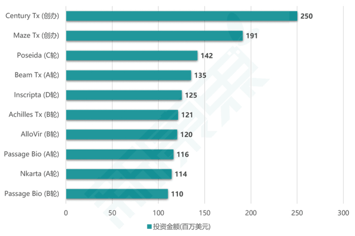 图表1. 2019年细胞治疗领域全球top10投资