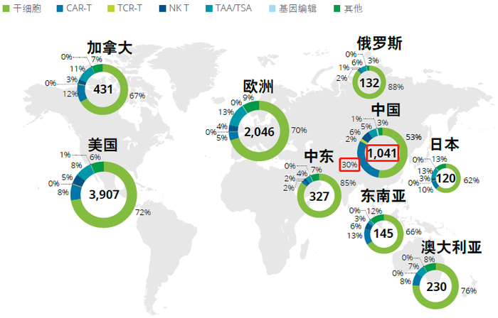 图表6. 全球细胞和基因疗法临床试验开展情况(截至2020.2.18)