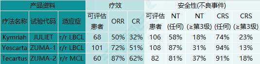 图表9. 获批的CAR-T疗法的疗效和安全性