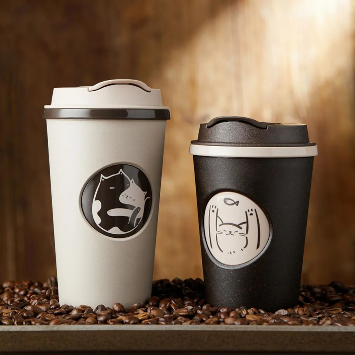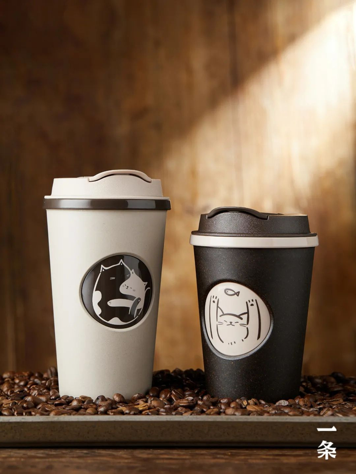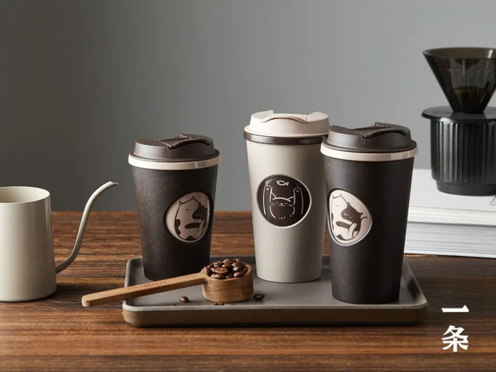 这次的随行杯还加入了可爱的猫咪元素,它们的图案还有两个萌萌的名字:要抱抱、举高高。