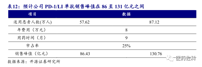2.1.3、 公司PD-1/L1单抗销售峰值有望超百亿