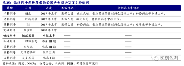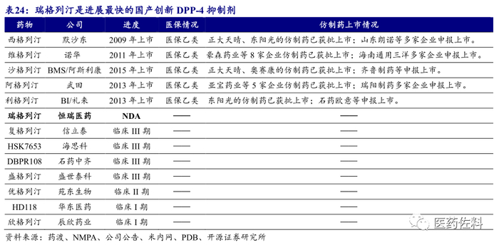4.1、 瑞格列汀、恒格列净已申报生产,有望成为在糖尿病用药中占据一席之地