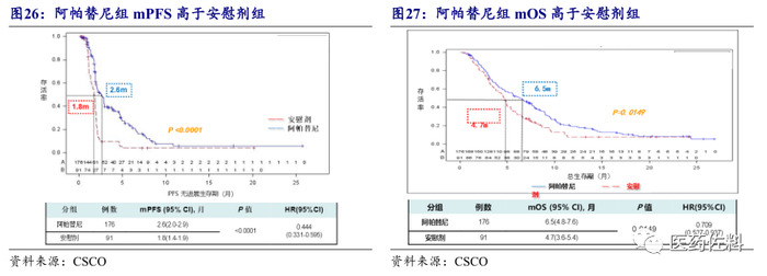 竞品雷莫芦单抗mOS为5.2个月,较安慰剂组延长1.4个月;mPFS为2.1个月,较安慰剂组延长0.8个月。阿帕替尼的III期临床试验结果显示其mOS为6.5个月,较安慰剂组延长1.8个月;mPFS为2.6个月,较安慰剂组延长0.8个月。阿帕替尼在延长患者总生存期上效果更显著。