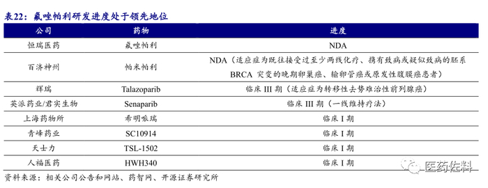 3.3、氟唑帕利:复发性卵巢癌适应症申报生产,联合用药临床研究值得期待
