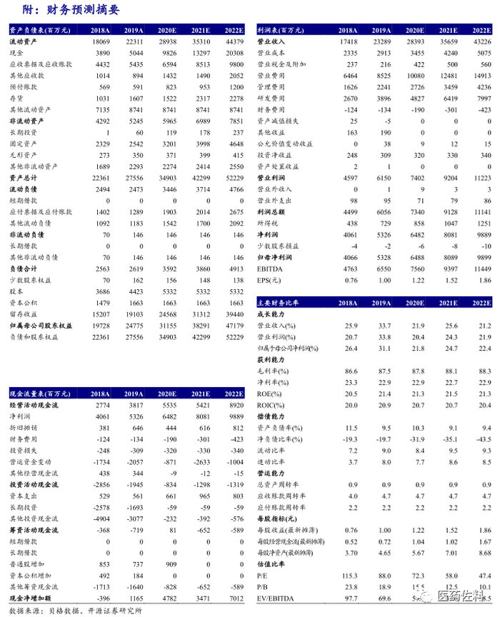 我们预计2020-2022年公司收入分别为283.93/356.59/432.26亿元,同比增长21.9%/25.6%/21.2%,归母净利润为64.88/80.89/98.99亿元,同比增长21.8%/24.7%/22.4%,当前股价对应PE分别为72.3/58.0/47.4,首次覆盖给予“买入”评级。