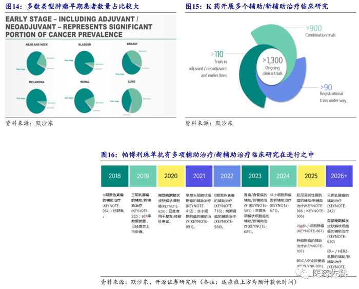 2.1.1、 PD-1/L1单抗适用症不断增加,逐步向辅助治疗和新辅助治疗拓展,联合用药成为趋势