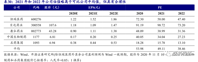 1)预计2020年至2022年公司抗肿瘤药收入增速48%/27%/23%,主要受益于:1.卡瑞利珠单抗快速放量,未来3-5年仍将是公司抗肿瘤药板块增长的重要动力;2.阿帕替尼新适应症获批,与卡瑞利珠单抗的销售协同效应逐步体现,仍将继续稳健增长;3.吡咯替尼、硫培非格司亭等创新药进入医保后快速放量;4.其他肿瘤仿制药稳健增长。