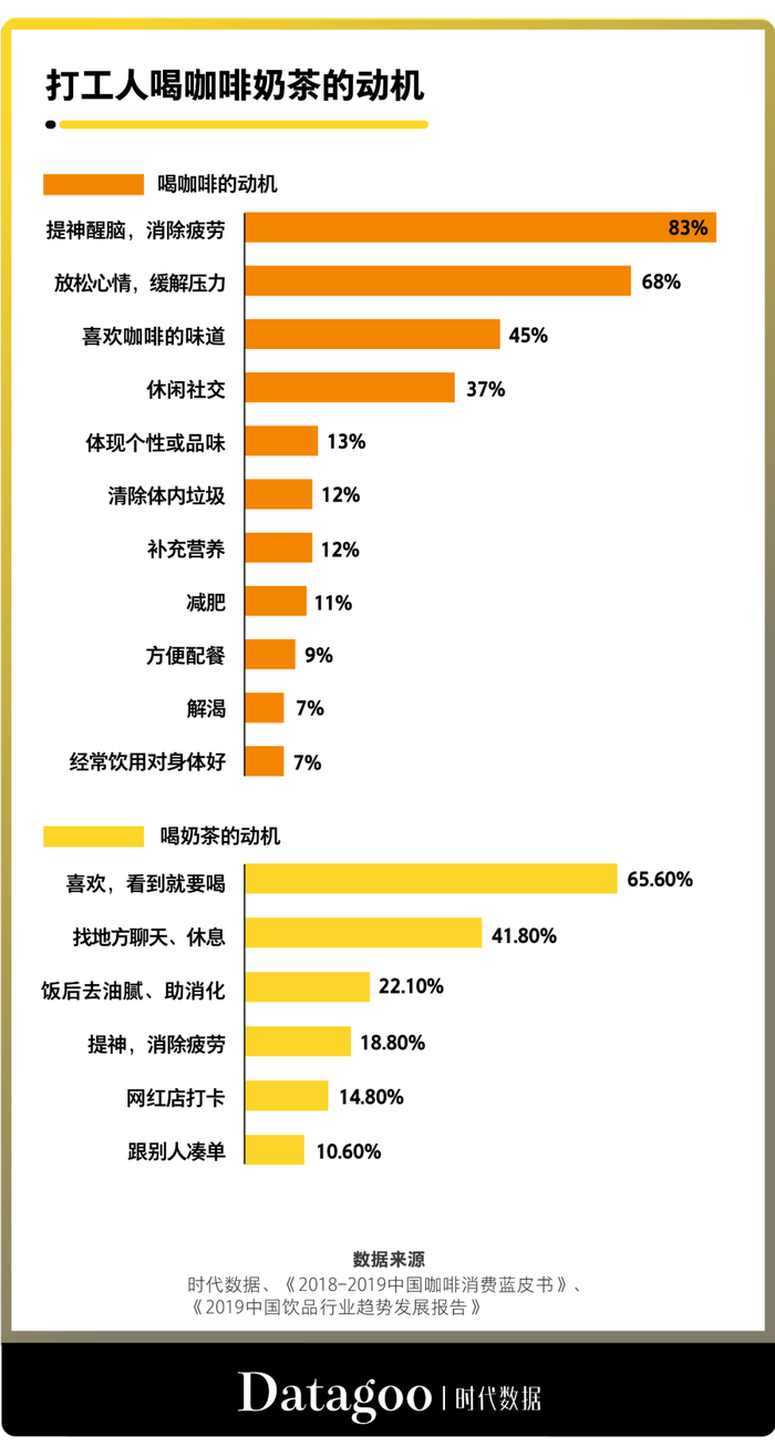 对于打工人来说,工作学习时续命就靠咖啡,休闲时间放松身心续命就靠奶茶,再简单不过。