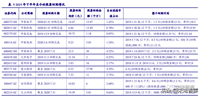 2019 年下半年至今,数十家军工上市公司中已经有数十家为了彰显公司发展信心而出台 了股票增持、股票回购、员工持股、股权激励等强有力举措。我们认为产业资本增持是资本市 场投资的底部信号之一,叠加行业景气度持续回升,行业投资价值有望逐步凸显。