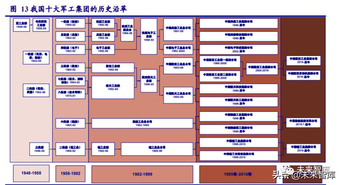 1、经历三次大规模改革重组,形成以十大军工集团为主导的军工产业体系