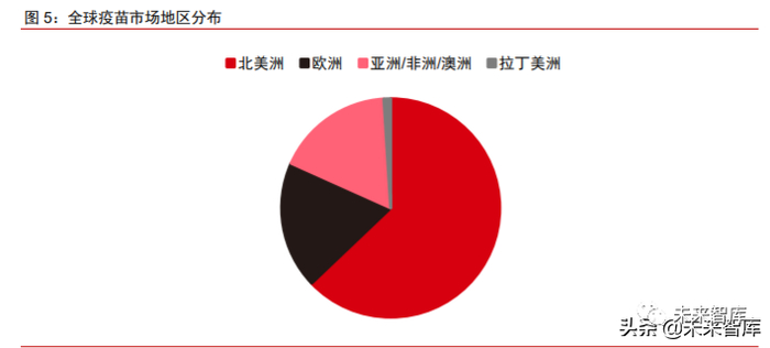北美市场占比最高,亚非拉澳地区发展潜力大。北美洲市场份额占全球疫苗市场份额 超过 60%,欧洲市场份额接近 20%,欧美地区疫苗市场发达主要是因为当地医疗保障完 善,当地居民疫苗接种意识较强,且免疫规划纳入疫苗种类更多。