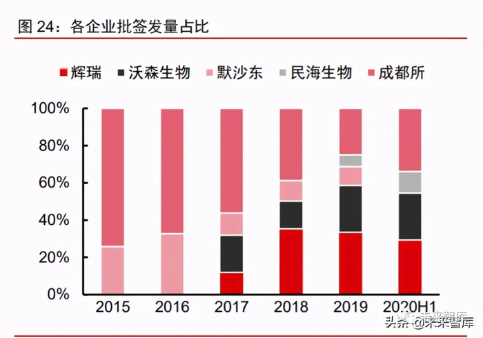 从2020H1 批签发数据看,重点品种竞争格局良好: