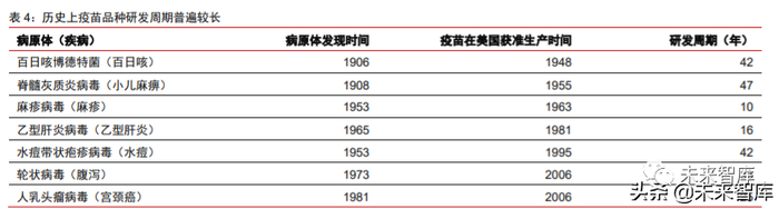 疫苗研发高门槛是促成并购的关键因素。全球大部分疫苗的临床Ⅰ期实验由 biotech 公司进行,四大巨头占比不到 10%,在临床阶段推进及上市申请中,biotech 公司逐渐减 少,而四大巨头成为主导者。疫苗研发高成本导致疫苗制品技术含量高,研发时间长。自 主研发新疫苗产品具有时间长、投入大、失败风险高等特点。主要源于:①疫苗制品的技 术含量高,提取特异抗原等技术较为复杂;②药监部门对疫苗监管十分严格,使得疫苗的 研发周期平均在 10 年以上。
