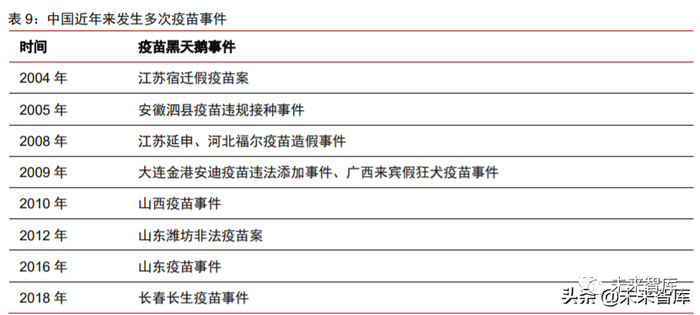 重大“黑天鹅”事件引领行业加强监管。2016 及 2018 年,我国相继爆发了“山东毒 疫苗事件”及“长生疫苗”事件两起重大安全事故,分别促成了《疫苗流通管理条例》的 修订和《疫苗管理法》的出台,带来行业监管体系的迅速严格化与完善化。