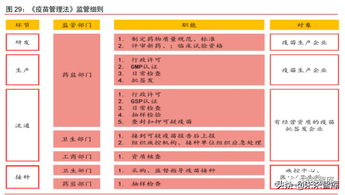 从生产监管上,进一步规范化生产流程:加大飞行检查力度,具备规范量产工艺 的大型疫苗企业竞争力将继续加强;
