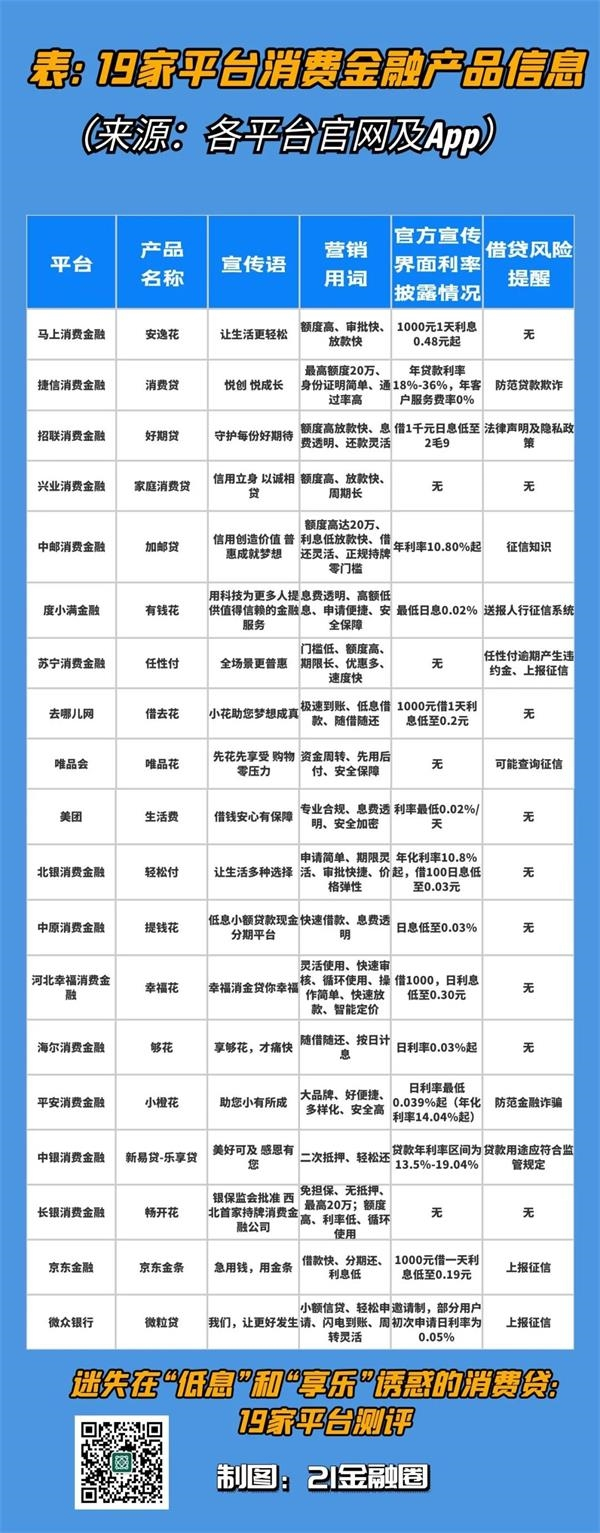 原标题:迷失在“低息”和“享乐”诱惑的消费贷:19家平台测评 来源:21金融圈