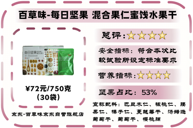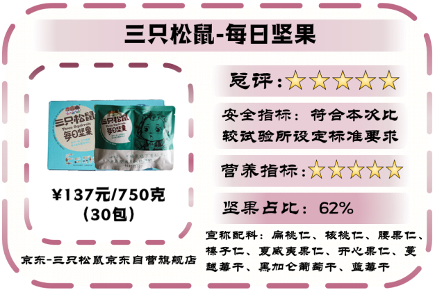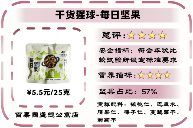 此次测试的9款混合坚果样品中,共有6款达到了高蛋白质水平,分别是——
