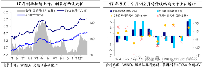 货币收紧+再融资压力加大=信用风险升温:(1)16年11-12月,紧货币去杠杆+券商代持事件+信用违约,债市大跌,利差飙升,转债大跌。如冀物流、大机床、中城建以及内蒙古博源多起违约事件发生,券商代持事件导致非银质押融资受阻,信用风险与流动性风险共振。(2)17年紧货币+去杠杆,流动性风险传导至信用风险,上半年信用风险事件集中,且以中小民企为主,市场冲击较16年有所缓和。
