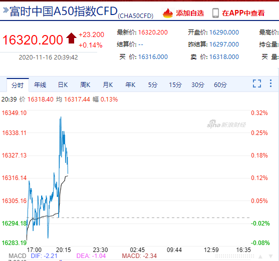 截至发稿,富时中国A50指数也短线飙升,不过之后有所回落。