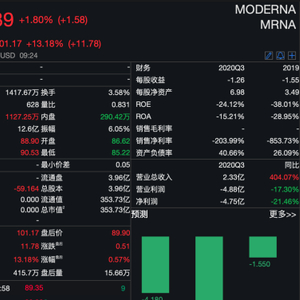美股抗疫概念股盘前上行。Moderna涨8.7%,联合保健产品涨5.6%,诺瓦瓦克斯医药涨4.2%,强生涨1.8%。