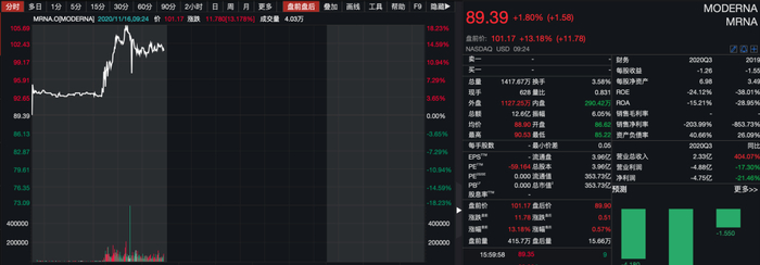 受这一消息推动,全球风险资产周一再度大涨。截至发稿,道指涨近1.06%,纳斯达克涨0.48%,欧洲主要股指全线上涨,黄金期货短线跳水逾30美元,国际油价涨逾3%,欧元区债券收益率上升,德国10年期国债收益率日内上涨2个基点,Moderna盘前大涨逾18%,辉瑞小幅下跌。
