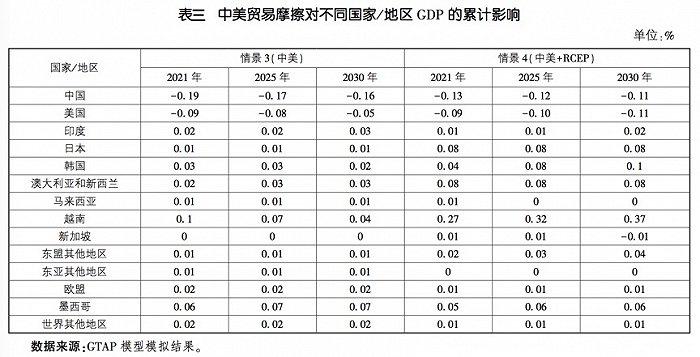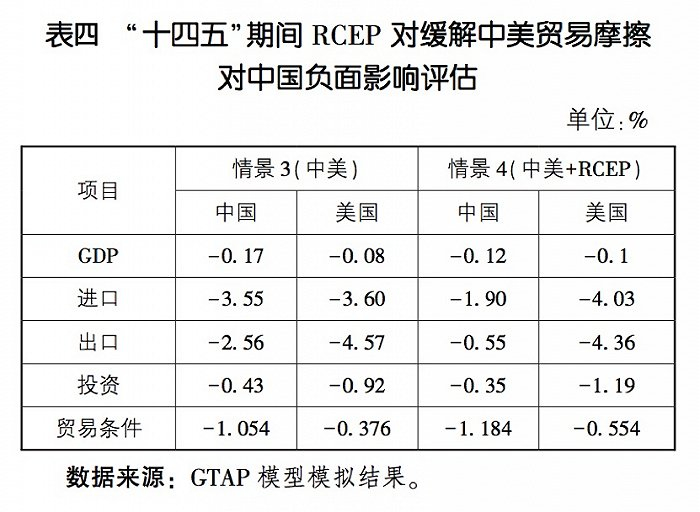 加入RCEP虽不能完全抵消中美贸易摩擦对中国的负面影响,但减缓作用明显。见表四。