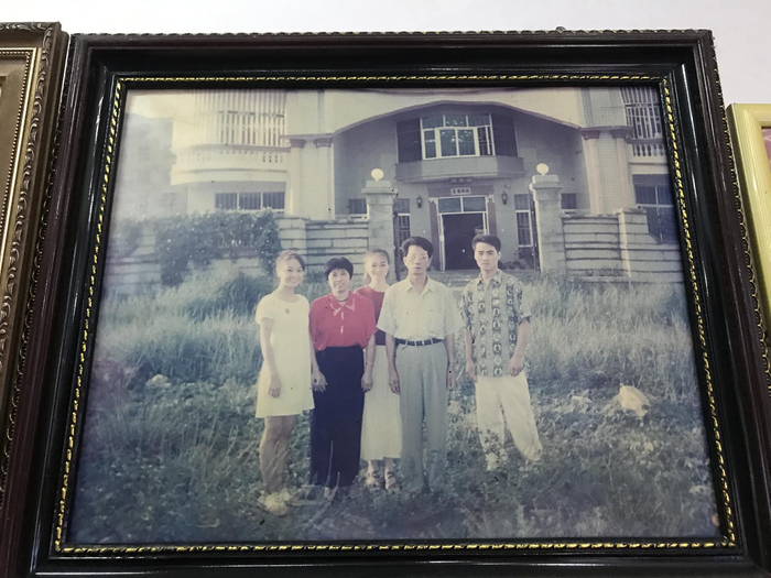 庄志银家的全家福照片。1997年,庄志银选择在香港回归时乔迁新家,门前的马路满是齐膝的杂草。 澎湃新闻记者 刘畅