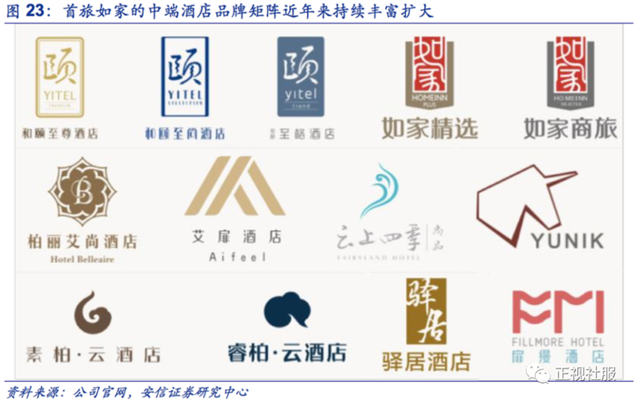 除如家商旅之外,公司针对不同客群、加盟商、地段等因素,近年持续扩大中端酒店产品矩阵,用以更好吸引加盟商和顾客的入驻。考虑到中端酒店针对不同的加盟商背景、不同地段对应的不同客群,以及不同租金下的不同定价需求,公司近年来对中端酒店的品牌矩阵持续推出新的不同价位及风格的品牌,抓住中高端住宿需求快速发展的机遇不断丰富中端酒店品牌矩阵。具体包括了公司在2015年推出如家精选;2017年推出扉缦酒店、和颐至尊酒店;2018年推出特色品牌YUNIK、柏丽艾尚;2019年推出激活交通枢纽的嘉虹酒店。目前公司中端酒店包含如家商旅、如家精选、和颐、YUNIK、艾扉酒店、柏丽艾尚、金牌驿居等诸多品牌,在中端市场深厚的布局能够满足各类消费者的差异化需求。
