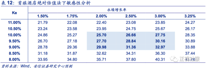 绝对估值来看,我们取公司对沪深300指数在2019年4月至今的Beta值1.12,永续增速考虑到后续具备提价能力给予2.5%增速,Ke为9.73%等核心假设下,对应公司在权益现金流贴现下的每股权益价值为27.79元;敏感性分析下,取Ke为9.0%~10.0%,永续增速为2.0%~3.0%区间下,对应每股权益价值的区间为25.70元~32.97元。
