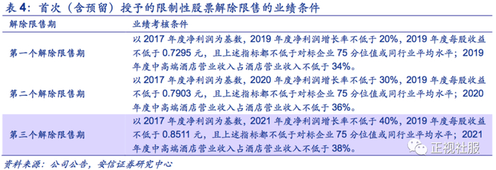 股权激励绑定公司与高管长远利益,开发团队人员扩张+激励机制提升为公司未来拓店成长保驾护航。2016年首旅收购如家后,原如家CEO孙坚担任重组后公司总经理,COO宗翔新担任副总经理。2018年,公司推出股权激励计划,激励计划首次授予的激励对象232人,限制性股票首次授予登记8,831,660股,实现高管人才与公司长远利益绑定,有利于激发公司经营效率。同时公司将中高端酒店经营纳入考核条件,根据公告,2019/2020/2021年中高端酒店营业收入不低于34%/36%/38%,有利于公司未来产品结构不断向中高端品牌转型。根据公司指引,酒店开发团队人员数量将增加到350-400位,且激励机制将继续改善,能够保证未来三五年持续的强劲开发能力。