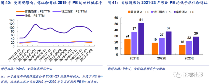 横向对比首旅酒店、锦江酒店、华住集团的2021~2023年PE预测值,公司的估值仍处于相对较低水平,分别为24.2x、20.4x、14.9x。考虑到公司自营酒店占比较高,且北京环球影城开业下对北京存量自营酒店的正向作用,后续同店恢复下业绩弹性有望更高;叠加成长性上公司未来3年中高端酒店开店有望加速,目前时点估值同样具备优势。