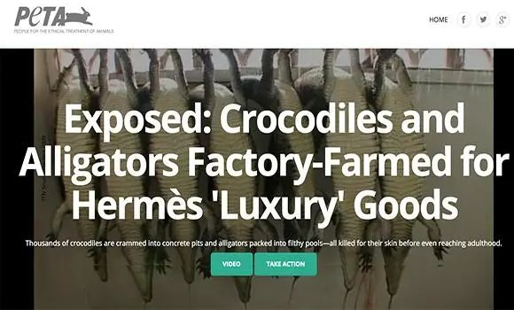 动物权利保护组织PETA当时曝光了在从德克萨斯州到津巴布韦的众多鳄鱼潭中,鳄鱼们先是被塞进混凝土坑里,然后被残忍地砍杀。Peta说制作一只珍贵的爱马仕手袋至少要屠杀2至3条鳄鱼。