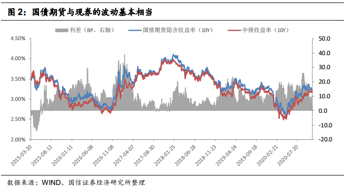 1.看多债市时,可以通过买入国债期货来快速提高组合久期,进而享受利率下行带来的收益。值得注意的是,与买入现券相比,买入国债期货并没有放弃“现券的票息”,这里有一个资金成本的概念。