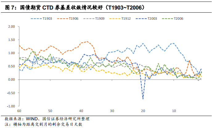 根据历史经验来看,在交割月之前的最后5个交易日中,两年期国债期货CTD券基差的平均值约为0.08元;五年期国债期货CTD券基差的平均值约为0.17元;十年期国债期货CTD券基差的平均值约为0.20元。