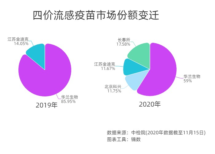 由此,华兰生物虽然今年加大了四价流感疫苗的供给量,但其占比仍由去年的85.95%降至59%。