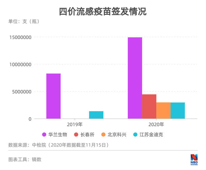 《每日经济新闻》记者注意到,今年四价流感疫苗签发量增幅巨大,除了原有企业加大生产量外,供应厂家增多也是一大原因。