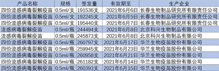 这批流感疫苗总共约为237.25万支,其中,北京科兴三价流感疫苗49万支,华兰生物和长春所均是四价流感疫苗,分别是130.33万支和57.92万支。