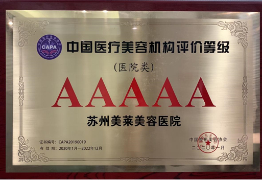 2019年,苏州美莱美容医院成功获得全国5A级医院资质。据中整协会会长张斌介绍,获评5A,表明苏州美莱在内部规范管理、保障患者安全、临床技术力量、医疗服务质量、医疗服务水平等方面,都走在国内其他美容医疗机构的前面,是值得百姓信任的医疗美容专业机构。