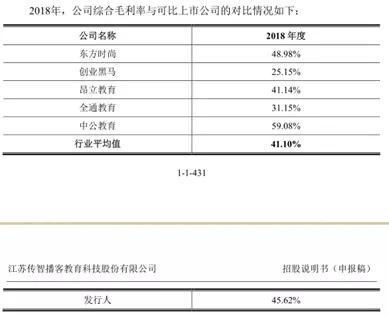 有意思的是,传智播客在申报稿中把上述四家企业列为主要竞争对手,但却在同行业上市公司比较中选择东方时尚、创业黑马、昂立教育、全通教育作为可比公司,由此得出了“公司2017年毛利率处于行业平均水平,2018年高于行业平均水平”的良好成绩。