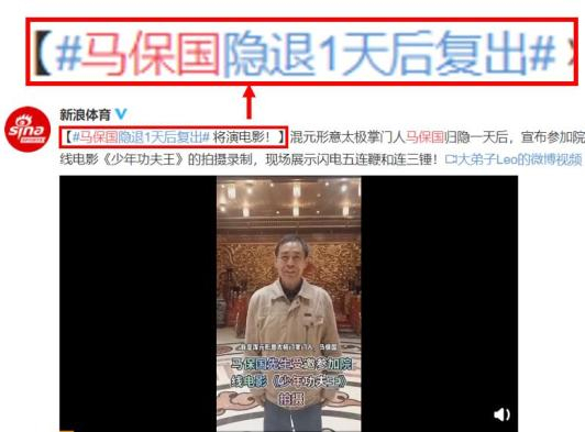 随后马老师微博发表隐退宣言,表示要远离武林纷争。没想到一天后马老师就宣布复出要拍电影了,很快啊!