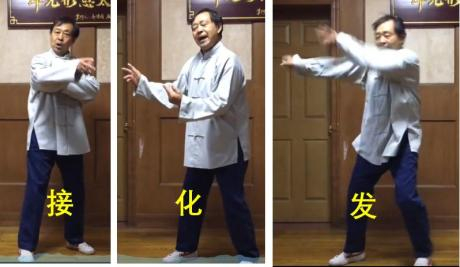 可能有人会质疑,这跟接化发的手势变换有差啊!但在实战中我们显然要根据对手情况进行微调,不可能严格按照分解动作的套路去打。毕竟师傅说过