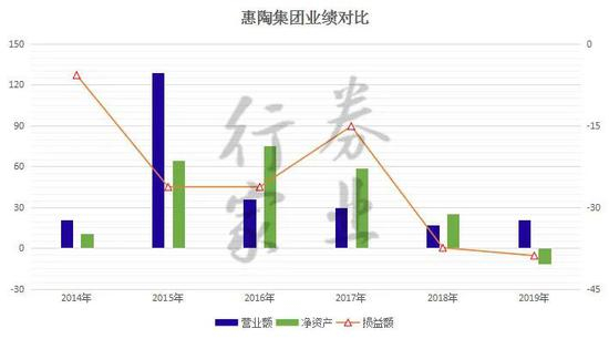 爆料人提到:从2017年到2019年,惠陶集团的营收呈现断崖式下滑,亏损额持续扩大;净资产也在2019年末出现负值。