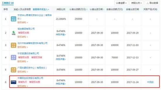 企查查信息显示,中民投于2017年9月30日认缴出资10亿元,持有蔷薇控股8.4746%的股份,实缴日期为2017年11月14日。