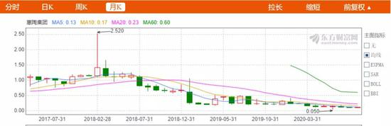 昙花一现之后,股价一路狂泻:2018年4月4日,首次回落至1.08;同年8月30日和10月16日,30日均价分别跌至0.80和0.70;同年11月14日,收盘价跌至0.58。2019年4月3日,股价跌至0.18的历史最低点。