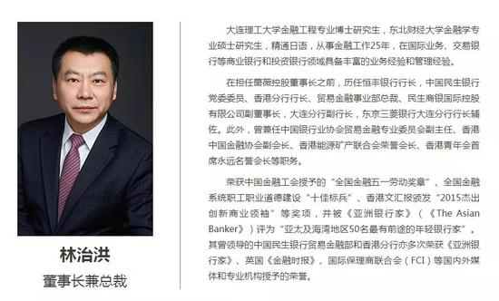 爆料人提到,蔷薇控股法人、董事长兼总经理为林治洪先生,而他此前曾任中国民生银行党委委员、香港分行行长,恒丰银行行长等职位。